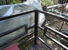 Чистим ограду до металла и закрываем соседей пленкой.